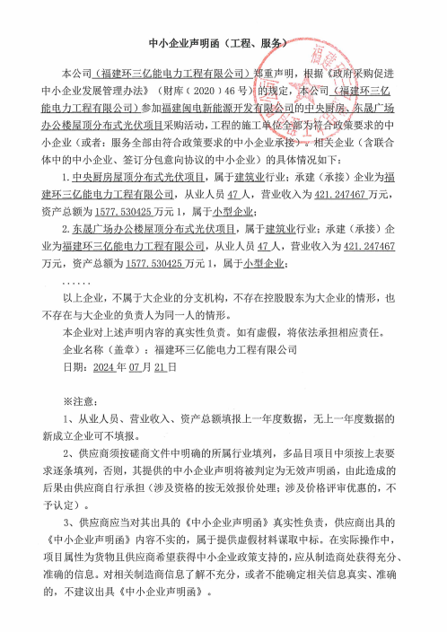 二、項目名稱:中央廚房、東晟廣場辦公樓屋頂分布式光伏項目