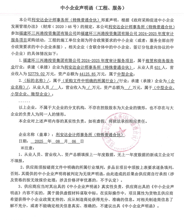 福建環(huán)三興港投資集團(tuán)有限公司2024-2025年度審計(jì)服務(wù)項(xiàng)目